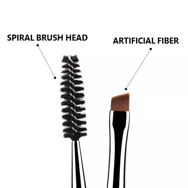 Silmameigipintsel Single on kahe otsaga ilutoode. Sellel on täpse nurga all olev sünteetiline pintsel kulmude täpsustamiseks ja silmapliiats, mis on ühendatud spooliga hooldamiseks ja segamiseks. Stiilne käepide tagab mugava kontrolli, ideaalne igapäevaseks ja professionaalseks silmameigiks.